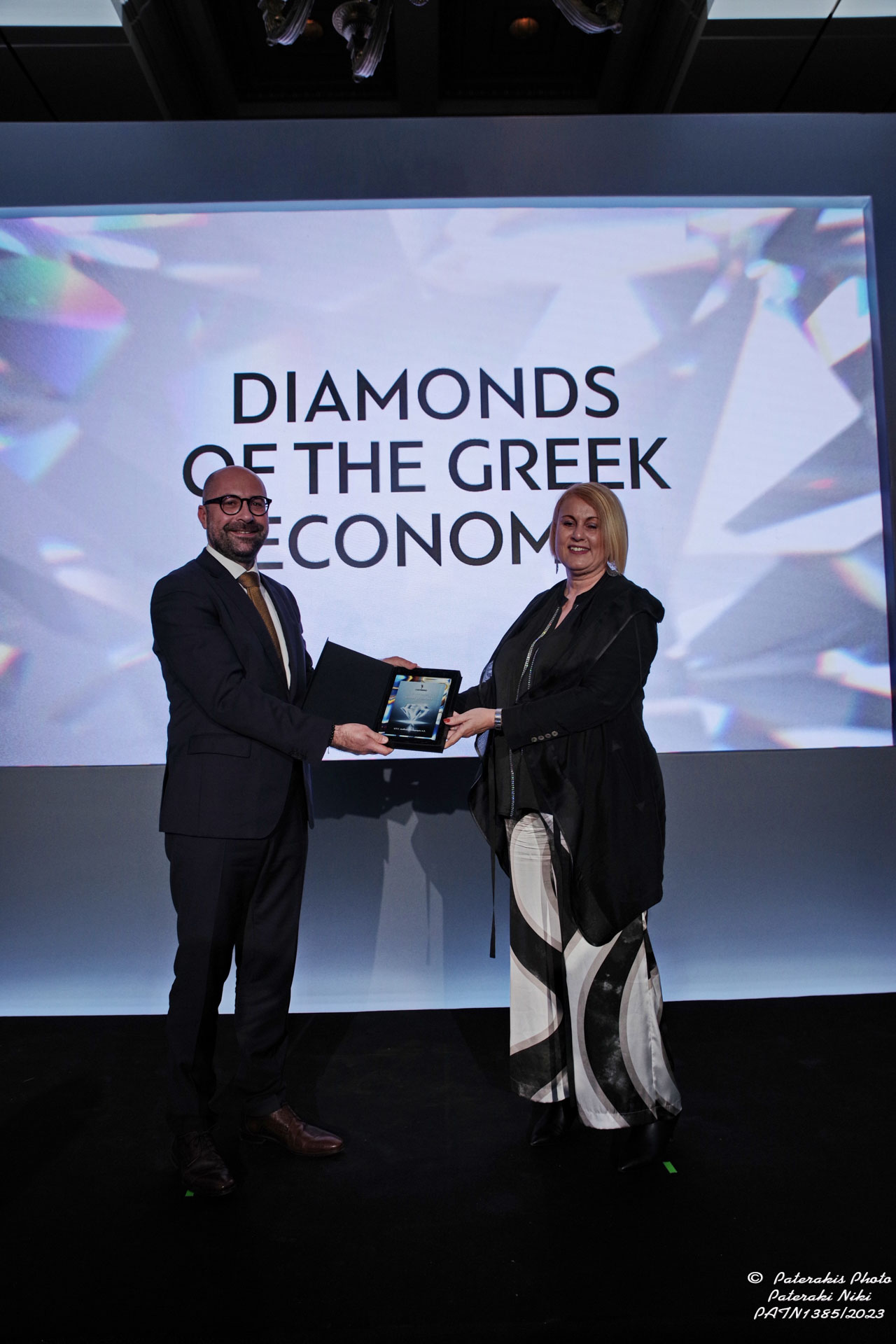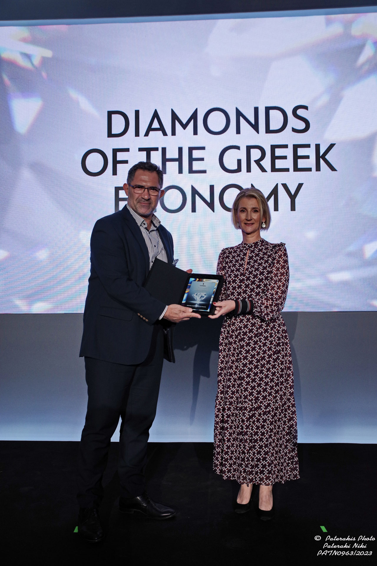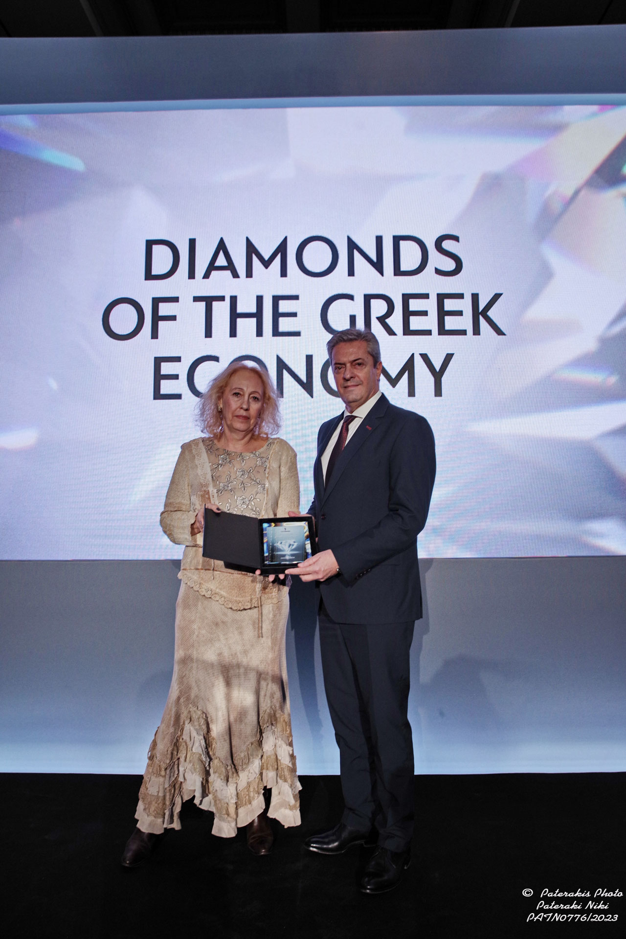 Η Αναπλ. Γραμματέας Τουρισμού ΠΑΣΟΚ Σοφία Κατσιγιάννη απονέμει το βραβείο στον Ιδρυτή και Δ/ντα Σύμβουλο της Zeus International Hotels & Resorts Χάρη Σιγανό