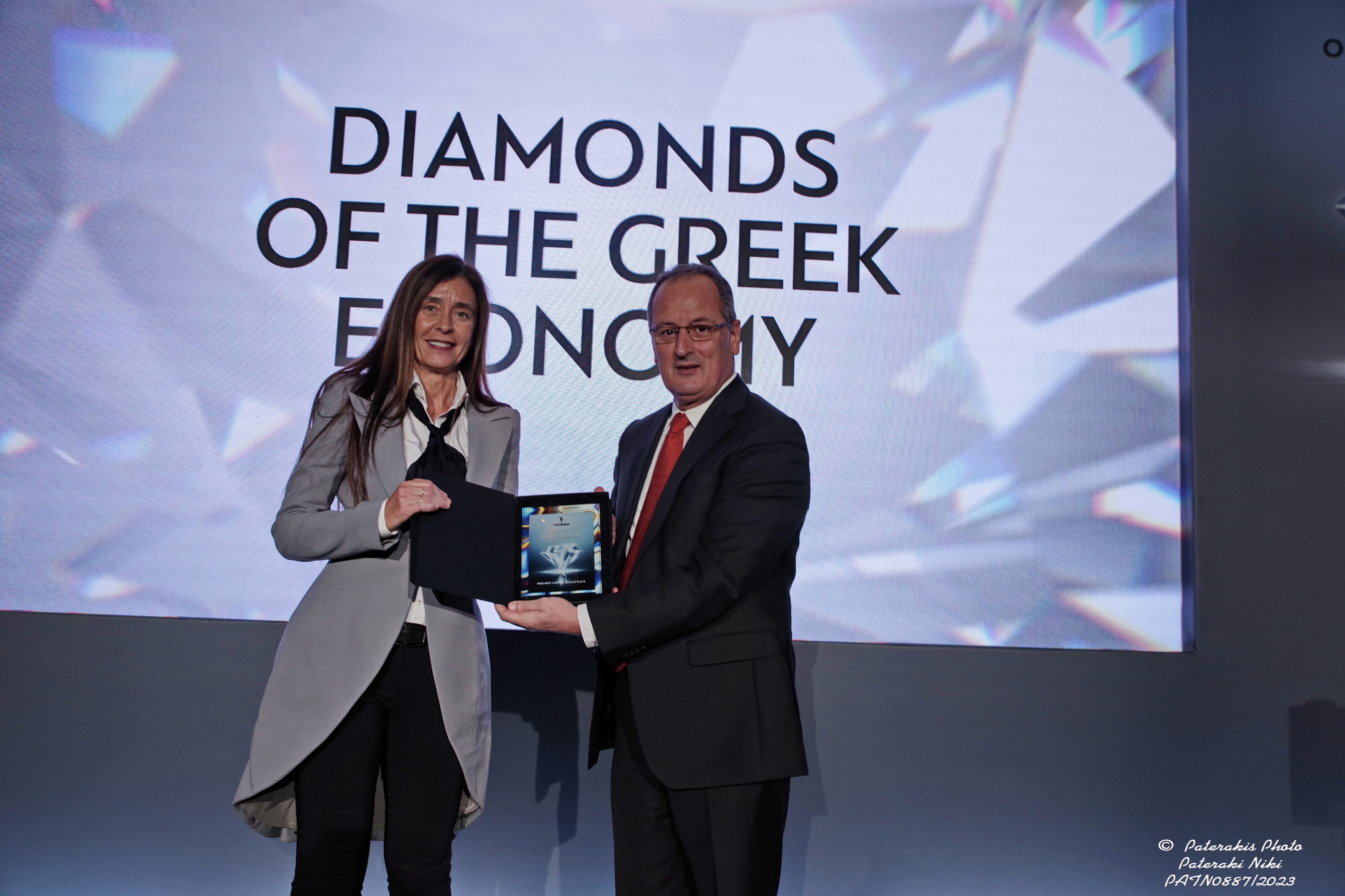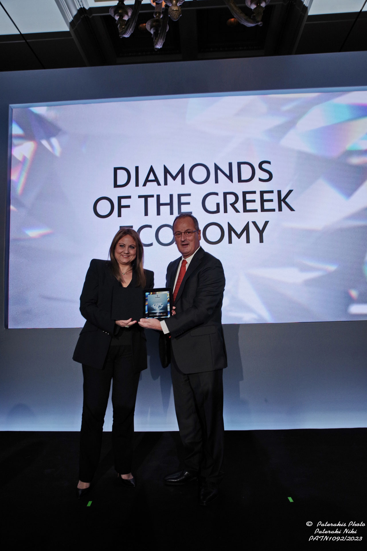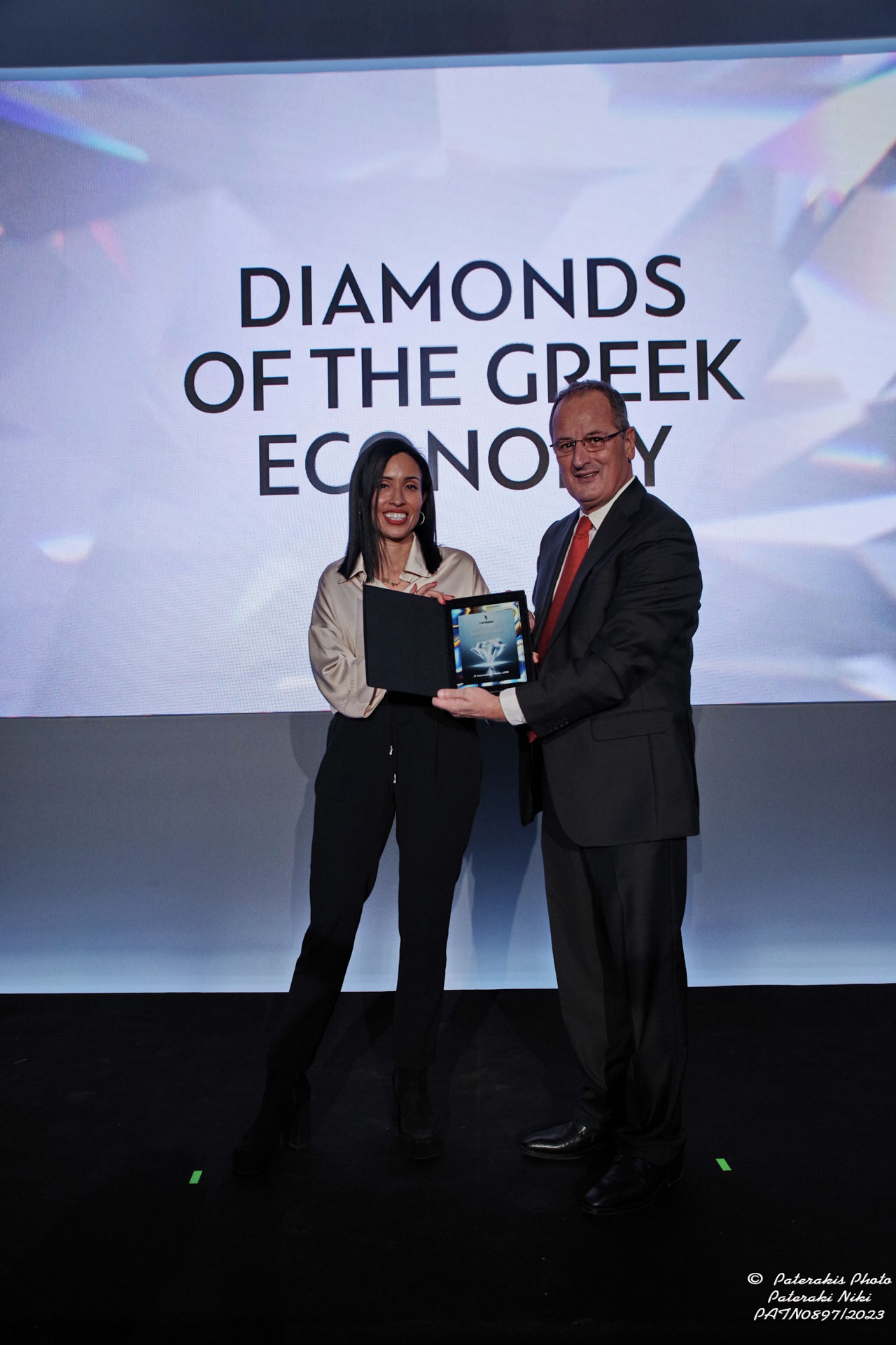 Η Αναπλ. Γραμματέας Τουρισμού ΠΑΣΟΚ Σοφία Κατσιγιάννη απονέμει το βραβείο στον Ιδρυτή και Δ/ντα Σύμβουλο της Zeus International Hotels & Resorts Χάρη Σιγανό